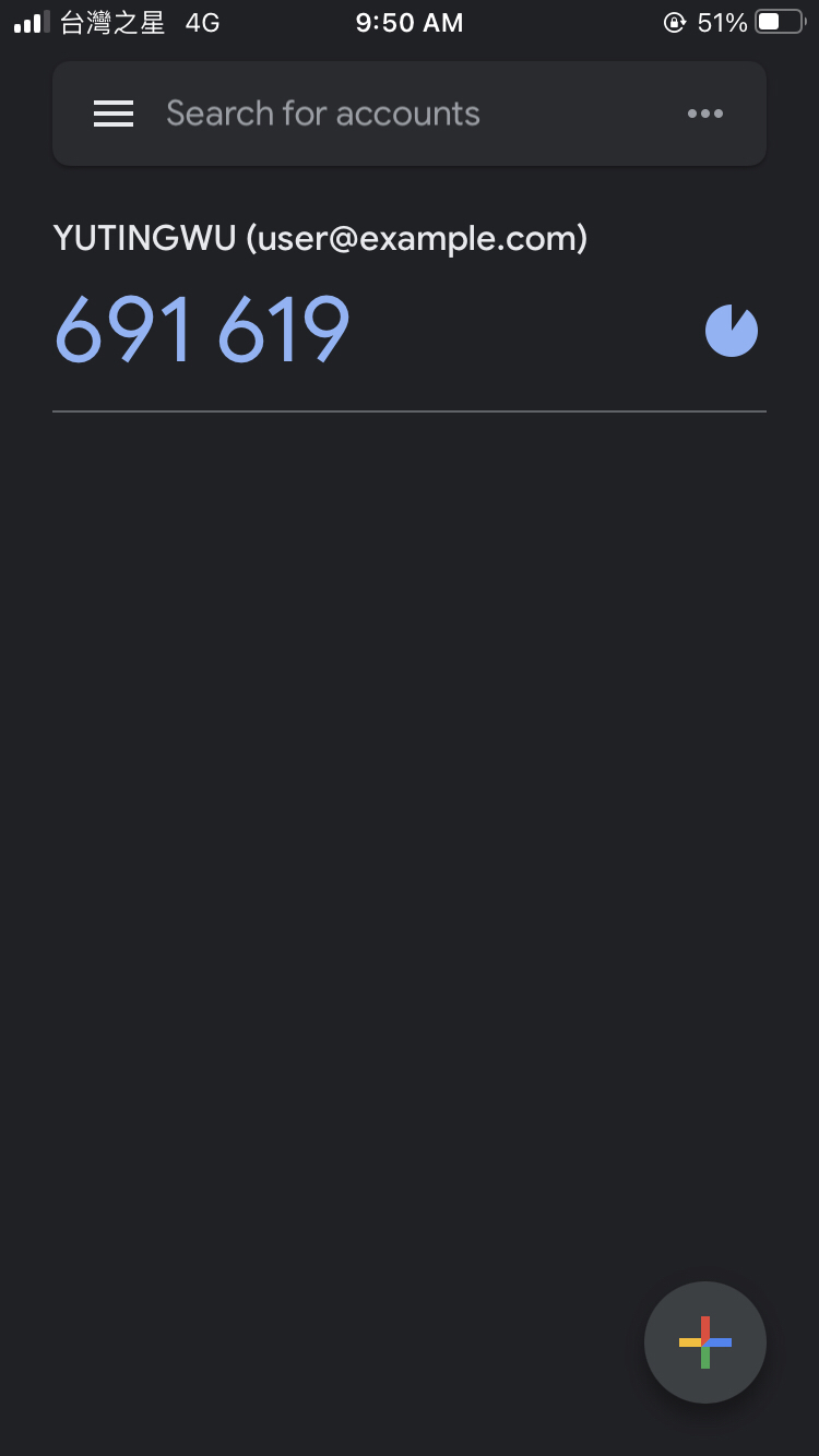 - 使用App掃描QR Code 圖檔加入後,可以看到User@example.com以及簽署的資訊