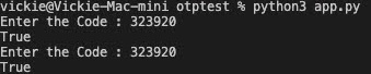 - 於Terminal 輸入產生的OTP代碼,執行結果如下